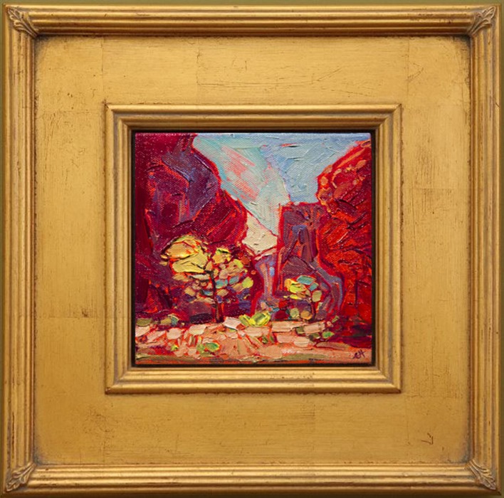 Erin Hanson presents a new series of small oil paintings on board. Inspired by treks across Utah, Nevada and California, Erin transforms desert landscapes into a mosaic of color impressions. These small paintings can be framed in any plein air frame or standard picture frame, and they are a great way to add an Erin Hanson original to your collection!