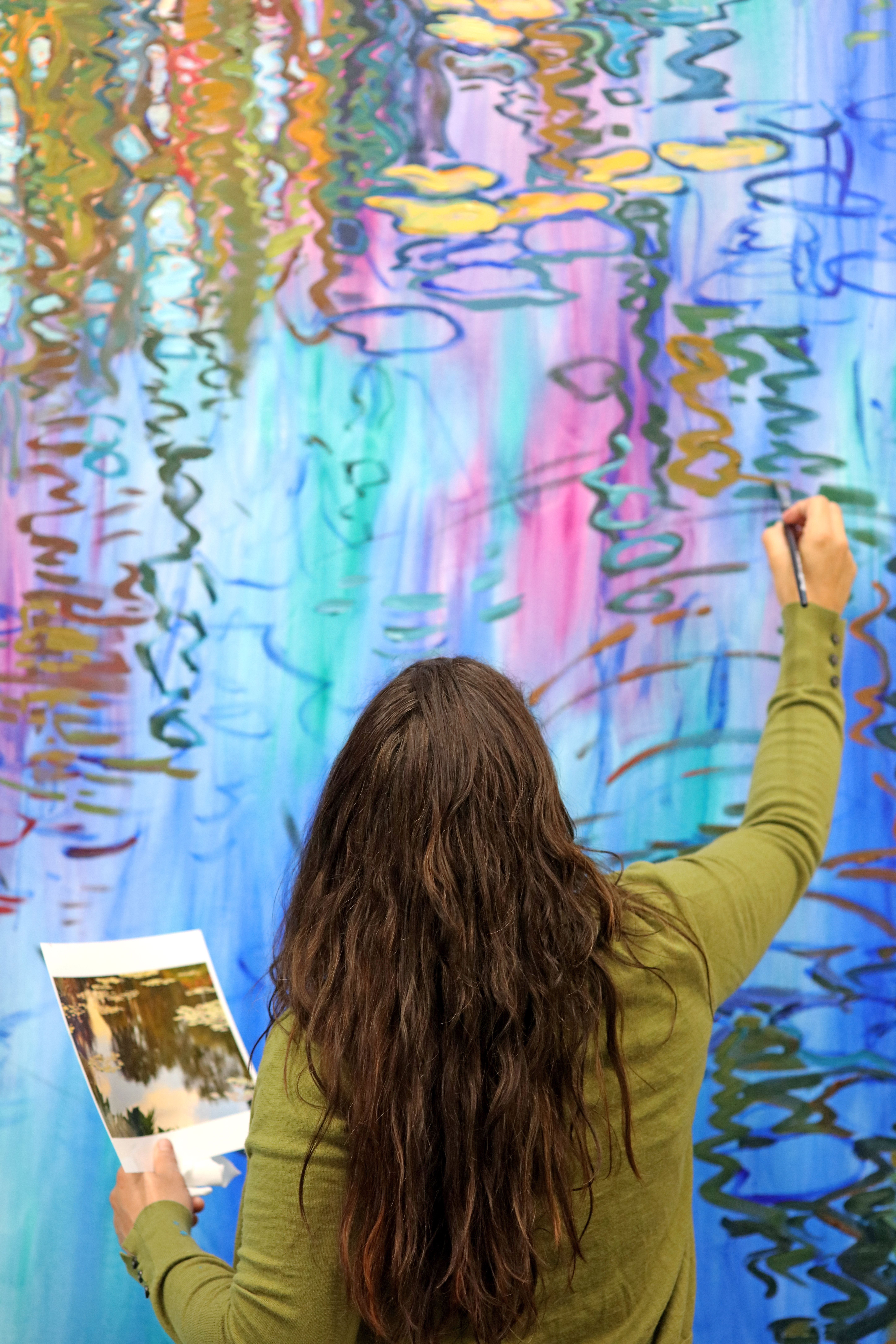 Back in my studio in Oregon, surrounded by the serene landscape of wine country, I began translating my experiences and insights into a new series of water lily paintings, including my largest water lily painting to date, entitled "Monet's Lilies."