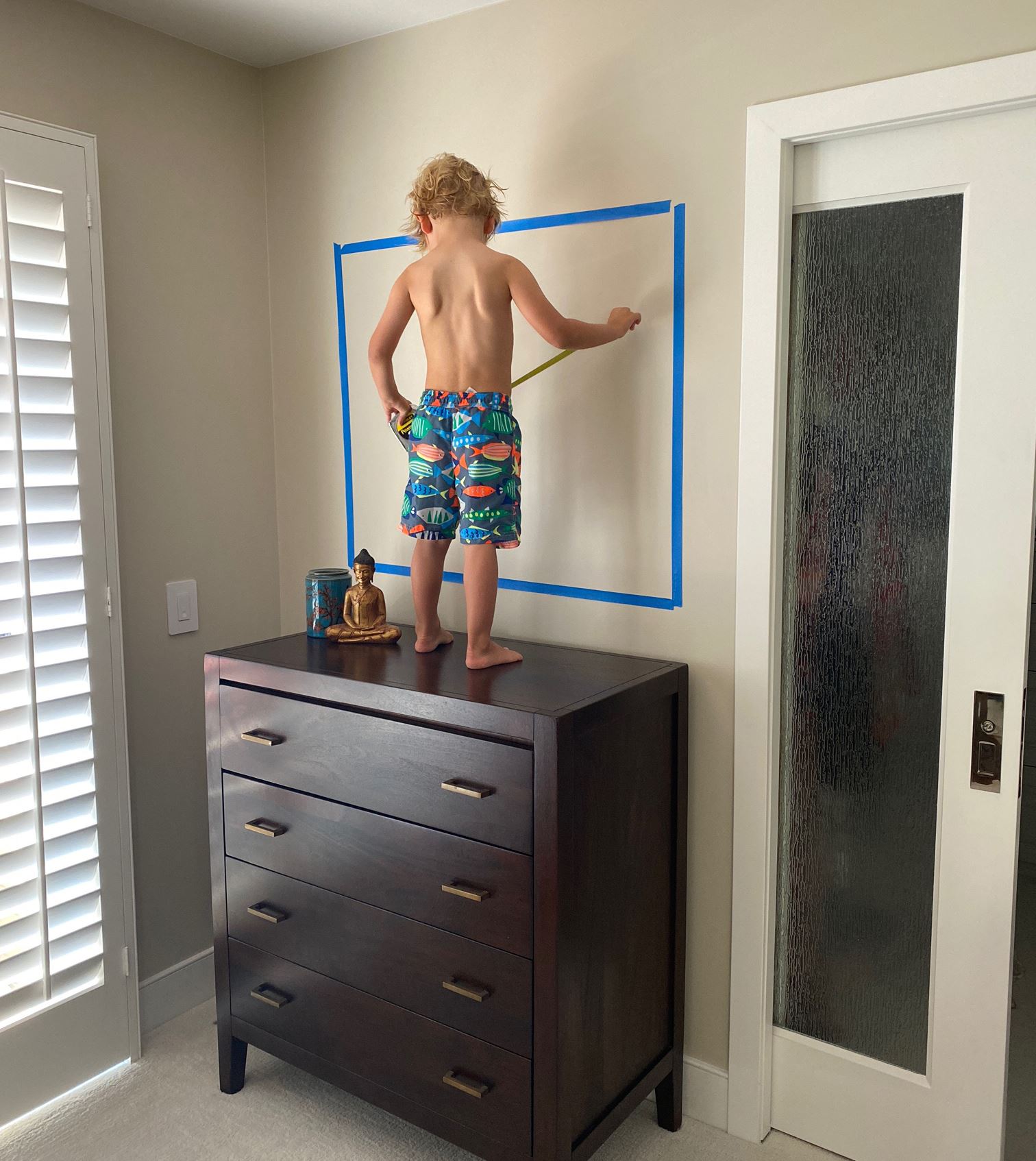 I often recommend that collectors use blue masking tape to mark out on the wall where a painting might go. Then you can walk around the house and view the wall from different angles, to make sure that the piece will be shown off at its best on that wall. If you need a specific size to fit inside an alcove or other architectural structure, I recommend commissioning a work.