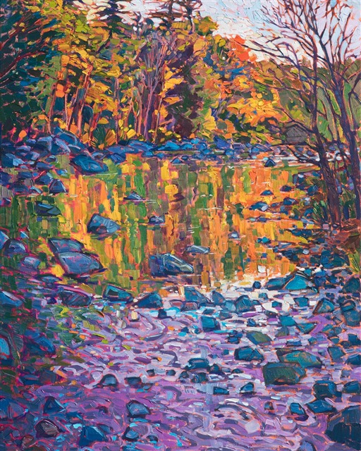 Erin devoted three years to perfecting the technology of 3D art printing in a quest to create a fine art print that captured her vibrant colors and reproduced the texture crucial to her artistic vision. The rhythms of texture in her luscious, impasto oil paintings communicate the movement and joy she finds in nature.
