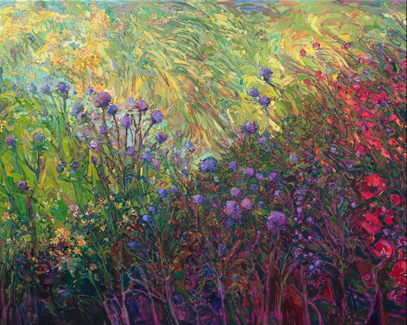 Erin devoted three years to perfecting the technology of 3D art printing in a quest to create a fine art print that captured her vibrant colors and reproduced the texture crucial to her artistic vision. The rhythms of texture in her luscious, impasto oil paintings communicate the movement and joy she finds in nature.
