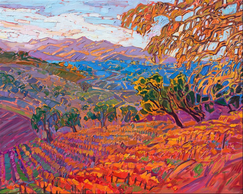 Please note: This painting will be hanging in a museum exhibition until November 5th, 2023. This piece is included in the show Erin Hanson: Color on the Vine at the Bone Creek Museum of Agrarian Art in Nebraska. You may purchase the painting now, but you will not receive the painting until after the show ends in November 2023.
