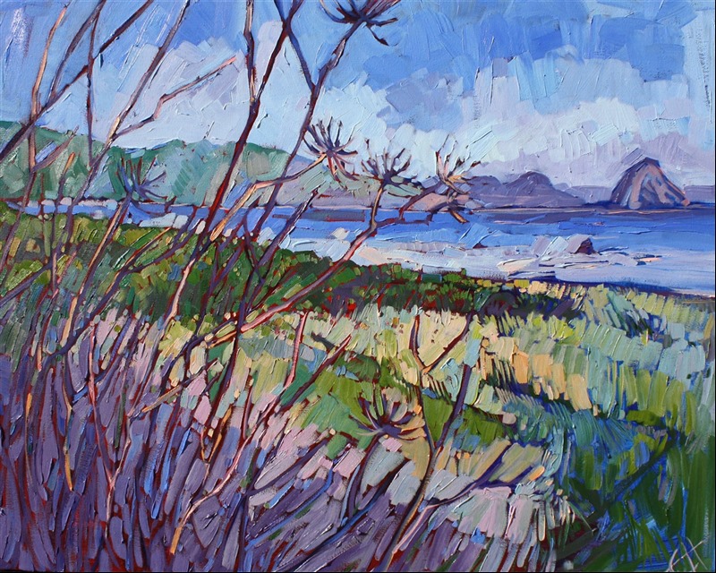 Style: "Open Impressionism" is a new style of painting developed by American artist Erin Hanson. The style is characterized by short, impasto brush strokes that are applied without layering, creating a mosaic or stained-glass appearance to the paintings. The paintings are created with a limited palette of colors, applied without blending or mixing upon the canvas, which adds a dimension of texture to each brush stroke. Inspired by classic impressionism, pointillism, and post-impressionism, Erin Hanson continues the tradition of impressionism into the modern day with her colorful and vivacious landscape paintings.