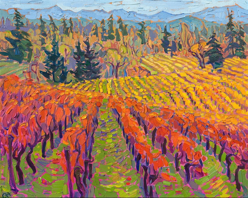 Please note: This painting will be hanging in a museum exhibition until November 5th, 2023. This piece is included in the show Erin Hanson: Color on the Vine at the Bone Creek Museum of Agrarian Art in Nebraska. You may purchase the painting now, but you will not receive the painting until after the show ends in November 2023.