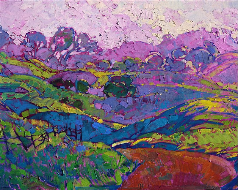 Erin devoted three years to perfecting the technology of 3D art printing in a quest to create a fine art print that captured her vibrant colors and reproduced the texture crucial to her artistic vision. The rhythms of texture in her luscious, impasto oil paintings communicate the movement and joy she finds in nature.