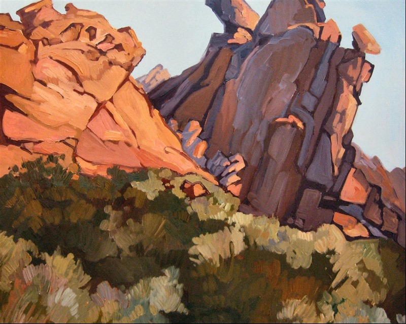 ERIN HANSON has been painting in oils since she was 8 years old. As a teenager, she apprenticed at a mural studio where she worked on 40-foot-long paintings while selling art commissions on the side. After being told it was too hard to make a living as an artist, she got her degree in Bioengineering from UC Berkeley. Afterward, Erin became a rock climber at Red Rock Canyon, Nevada. Inspired by the colorful scenery she was climbing, she decided to return to her love of painting and create one new painting every week.