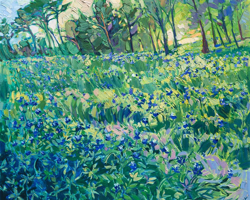 Erin devoted three years to perfecting the technology of 3D art printing in a quest to create a fine art print that captured her vibrant colors and reproduced the texture crucial to her artistic vision. The rhythms of texture in her luscious, impasto oil paintings communicate the movement and joy she finds in nature.