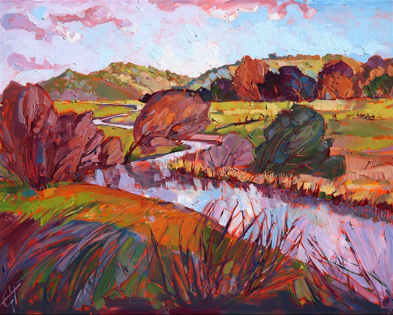 Erin devoted three years to perfecting the technology of 3D art printing in a quest to create a fine art print that captured her vibrant colors and reproduced the texture crucial to her artistic vision. The rhythms of texture in her luscious, impasto oil paintings communicate the movement and joy she finds in nature.