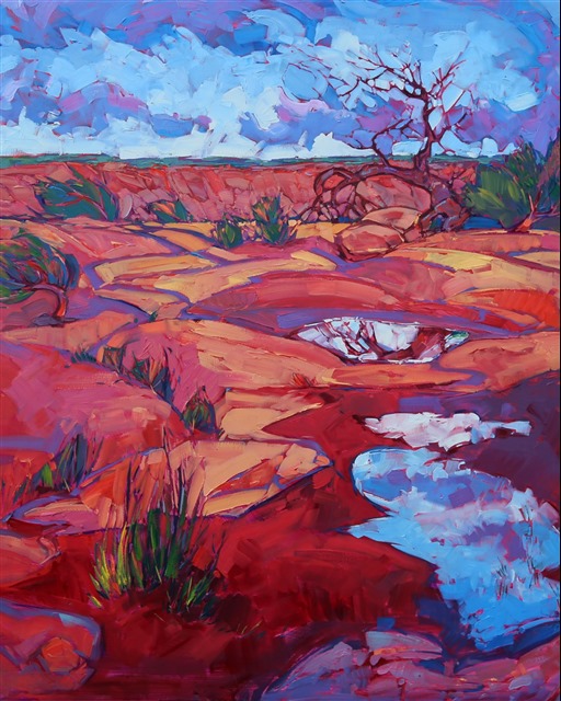 Style: "Open Impressionism" is a new style of painting developed by American artist Erin Hanson. The style is characterized by short, impasto brush strokes that are applied without layering, creating a mosaic or stained-glass appearance to the paintings. The paintings are created with a limited palette of colors, applied without blending or mixing upon the canvas, which adds a dimension of texture to each brush stroke. Inspired by classic impressionism, pointillism, and post-impressionism, Erin Hanson continues the tradition of impressionism into the modern day with her colorful and vivacious landscape paintings.