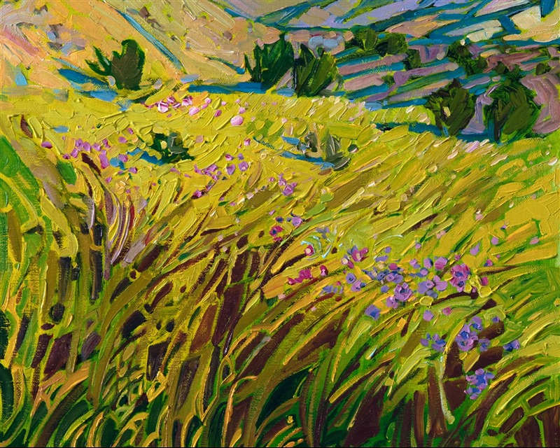 Erin devoted three years to perfecting the technology of 3D art printing in a quest to create a fine art print that captured her vibrant colors and reproduced the texture crucial to her artistic vision. The rhythms of texture in her luscious, impasto oil paintings communicate the movement and joy she finds in nature.