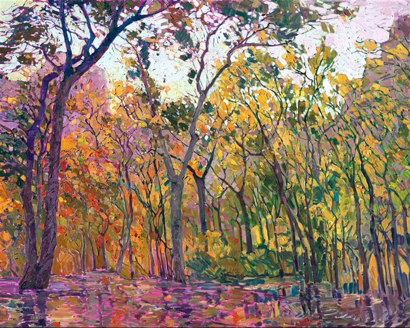 Erin devoted three years to perfecting the technology of 3D art printing in a quest to create a fine art print that captured her vibrant colors and reproduced the texture crucial to her artistic vision. The rhythms of texture in her luscious, impasto oil paintings communicate the movement and joy she finds in nature.