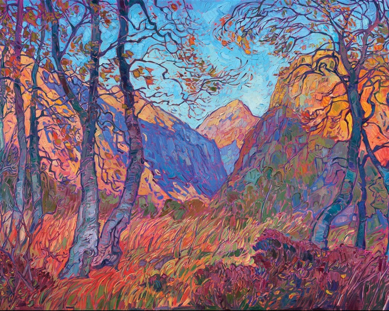 Erin Hanson's 3D Textured Replicas are almost indistinguishable from the original painting from a short distance away, capturing the texture of every brush stroke and weave of the canvas, as well as the vibrant colors of the original oil painting. These are the most realistic painting reproductions available with today's 3D scanning and printing technology.