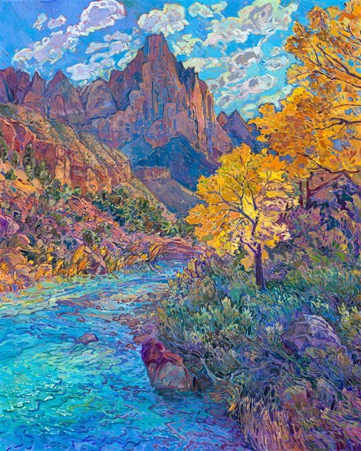 This painting was exhibited at Erin Hanson: Landscapes of the West solo museum exhibition at the Sears Art Museum in St. George, Utah.