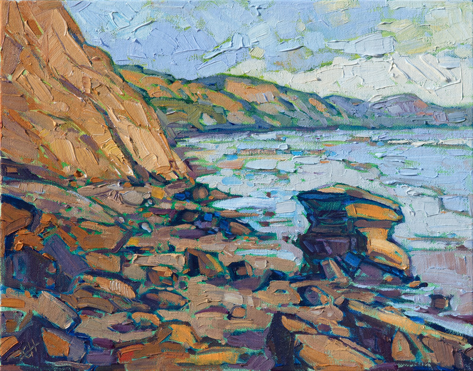 Black's Beach in San Diego is a striking beach, both in its beautiful rock coloration and the surprising nude factor (surprising for out-of-towners, anyways.) This painting captures the beautiful cliffs and subdued ocean colors of a late afternoon.