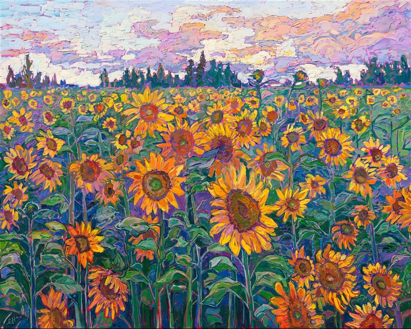 She has stuck to that decision, becoming one of the most prolific artists in history, with over 3,000 oil paintings sold to eager collectors. Erin Hanson’s style is known as "Open Impressionism" and is taught in art schools worldwide. With millions of followers, Hanson has become an iconic, driving force in the rebirth of impressionism, inspiring thousands of other artists to pick up the brush.
