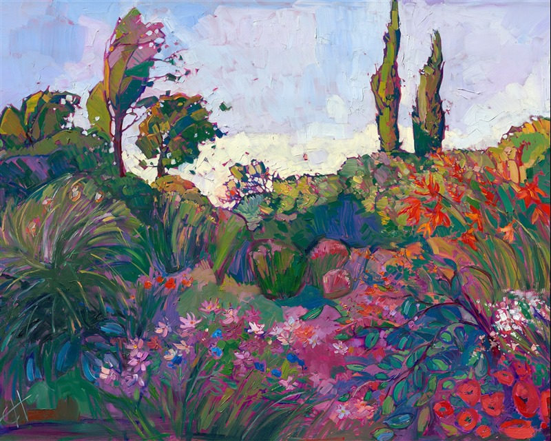 A garden of blooming flowers inspired this painting by American impressionist Erin Hanson.