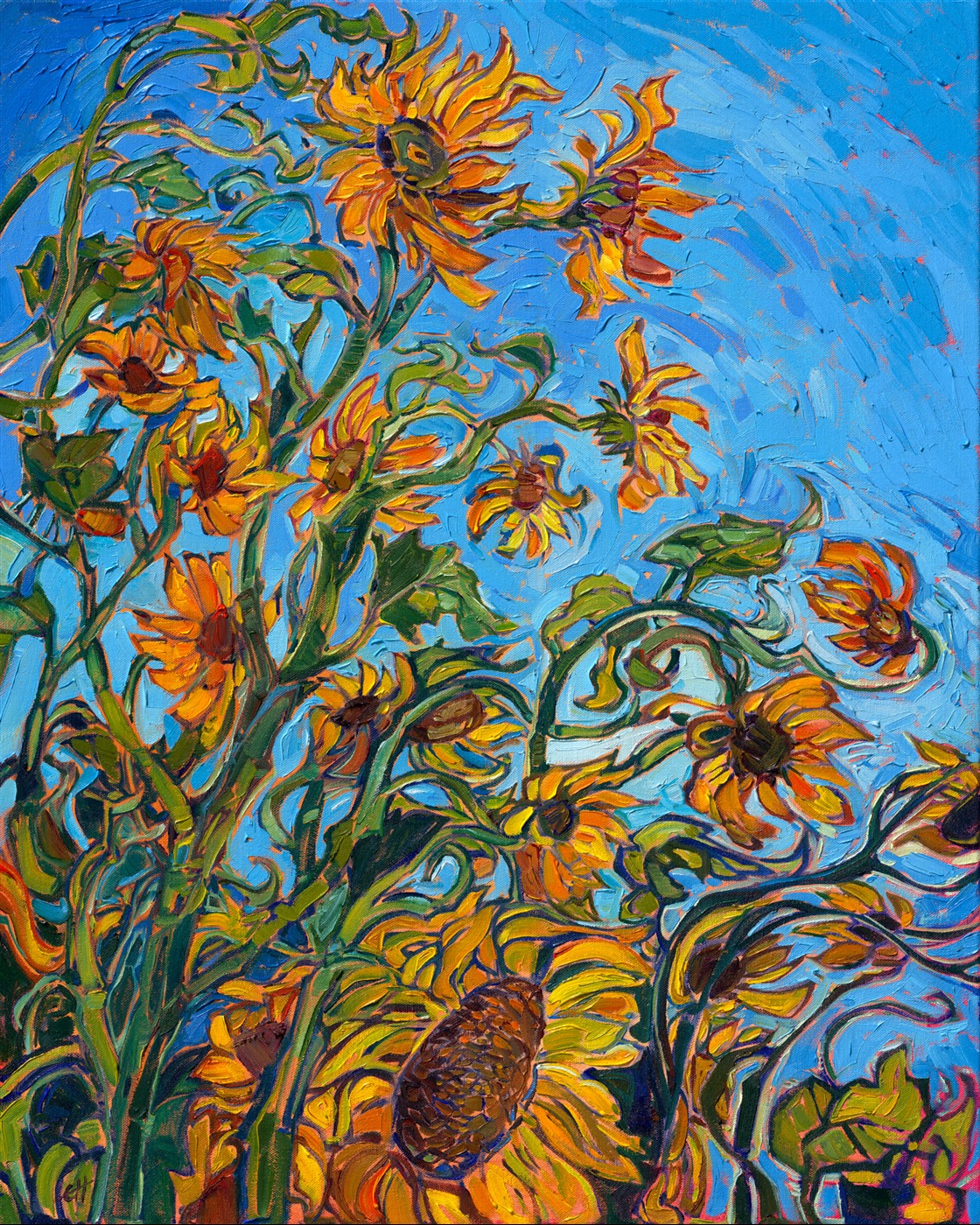 Erin devoted three years to perfecting the technology of 3D art printing in a quest to create a fine art print that captured her vibrant colors and reproduced the texture crucial to her artistic vision. The rhythms of texture in her luscious, impasto oil paintings communicate the movement and joy she finds in nature.