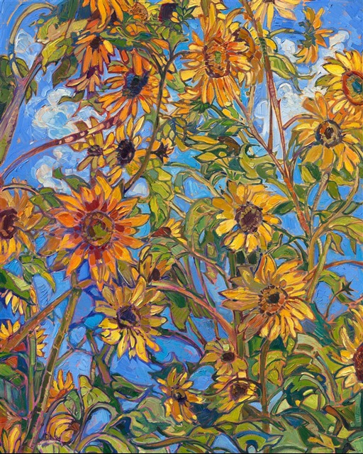 Erin devoted three years to perfecting the technology of 3D art printing in a quest to create a fine art print that captured her vibrant colors and reproduced the texture crucial to her artistic vision. The rhythms of texture in her luscious, impasto oil paintings communicate the movement and joy she finds in nature.