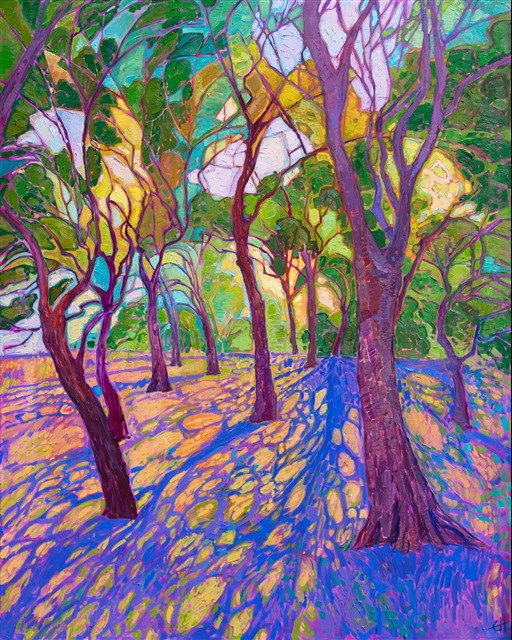 Erin devoted three years to perfecting the technology of 3D art printing in a quest to create a fine art print that captured her vibrant colors and reproduced the texture crucial to her artistic vision. The rhythms of texture in her luscious, impasto oil paintings communicate the movement and joy she finds in nature.