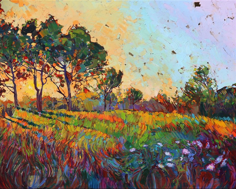 Erin devoted three years to perfecting the technology of 3D art printing in a quest to create a fine art print that captured her vibrant colors and reproduced the texture crucial to her artistic vision. The rhythms of texture in her luscious, impasto oil paintings communicate the movement and joy she finds in nature.