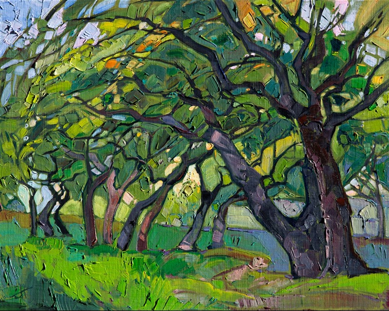 Erin devoted three years to perfecting the technology of 3D art printing in a quest to create a fine art print that captured her vibrant colors and reproduced the texture crucial to her artistic vision. The rhythms of texture in her luscious, impasto oil paintings communicate the movement and joy she finds in nature.