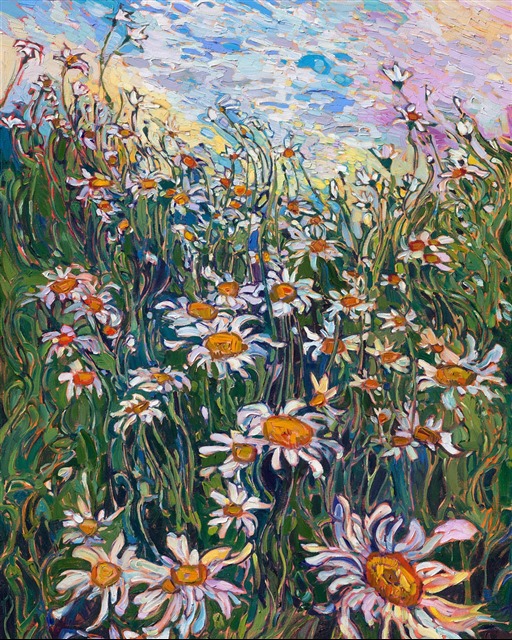 Style: "Open Impressionism" is a new style of painting developed by American artist Erin Hanson. The style is characterized by short, impasto brush strokes that are applied without layering, creating a mosaic or stained-glass appearance to the paintings. The paintings are created with a limited palette of colors, applied without blending or mixing upon the canvas, which adds a dimension of texture to each brush stroke. Inspired by classic impressionism, pointillism, and post-impressionism, Erin Hanson continues the tradition of impressionism into the modern day with her colorful and vivacious landscape paintings.