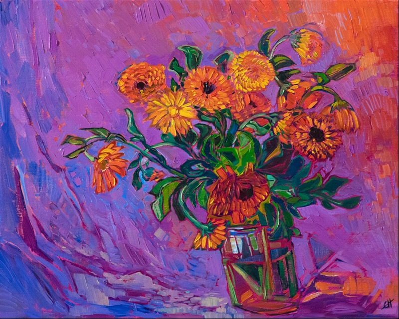 Erin devoted three years to perfecting the technology of 3D art printing in a quest to create a fine art print that captured her vibrant colors and reproduced the texture crucial to her artistic vision. The rhythms of texture in her luscious, impasto oil paintings communicate the movement and joy she finds in nature.
