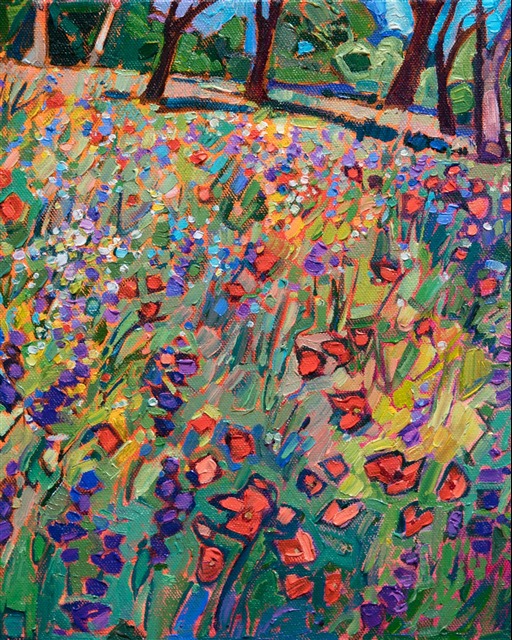 Erin devoted three years to perfecting the technology of 3D art printing in a quest to create a fine art print that captured her vibrant colors and reproduced the texture crucial to her artistic vision. The rhythms of texture in her luscious, impasto oil paintings communicate the movement and joy she finds in nature.