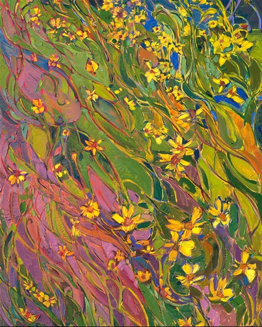 Erin devoted three years to perfecting the technology of 3D art printing in a quest to create a fine art print that captured her vibrant colors and reproduced the texture crucial to her artistic vision. The rhythms of texture in her luscious, impasto oil paintings communicate the movement and joy she finds in nature.