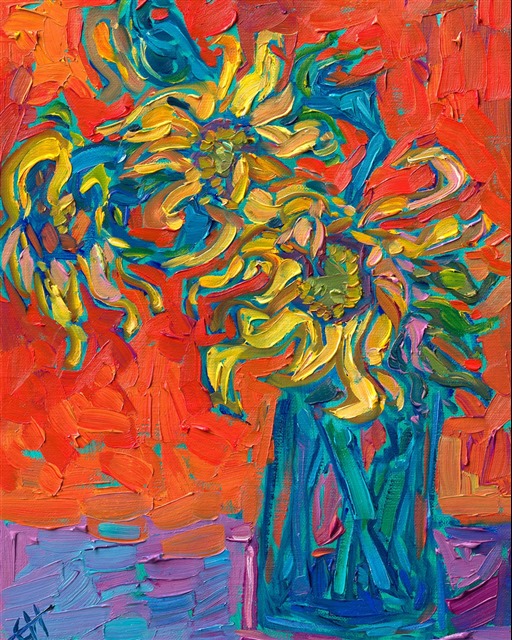 Erin devoted three years to perfecting the technology of 3D art printing in a quest to create a fine art print that captured her vibrant colors and reproduced the texture crucial to her artistic vision. The rhythms of texture in her luscious, impasto oil paintings communicate the movement and joy she finds in nature.