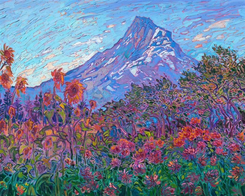 She has stuck to that decision, becoming one of the most prolific artists in history, with over 3,000 oil paintings sold to eager collectors. Erin Hanson’s style is known as "Open Impressionism" and is taught in art schools worldwide. With millions of followers, Hanson has become an iconic, driving force in the rebirth of impressionism, inspiring thousands of other artists to pick up the brush.