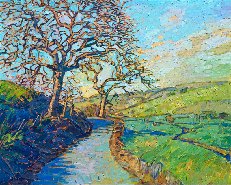Erin devoted three years to perfecting the technology of 3D art printing in a quest to create a fine art print that captured her vibrant colors and reproduced the texture crucial to her artistic vision. The rhythms of texture in her luscious, impasto oil paintings communicate the movement and joy she finds in nature.