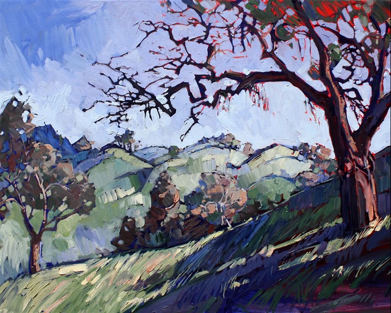 Style: "Open Impressionism" is a new style of painting developed by American artist Erin Hanson. The style is characterized by short, impasto brush strokes that are applied without layering, creating a mosaic or stained-glass appearance to the paintings. The paintings are created with a limited palette of colors, applied without blending or mixing upon the canvas, which adds a dimension of texture to each brush stroke. Inspired by classic impressionism, pointillism, and post-impressionism, Erin Hanson continues the tradition of impressionism into the modern day with her colorful and vivacious landscape paintings.