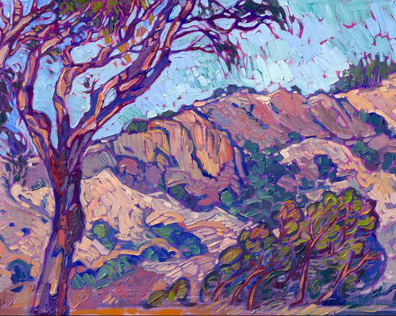 ERIN HANSON has been painting in oils since she was 8 years old. As a teenager, she apprenticed at a mural studio where she worked on 40-foot-long paintings while selling art commissions on the side. After being told it was too hard to make a living as an artist, she got her degree in Bioengineering from UC Berkeley. Afterward, Erin became a rock climber at Red Rock Canyon, Nevada. Inspired by the colorful scenery she was climbing, she decided to return to her love of painting and create one new painting every week.