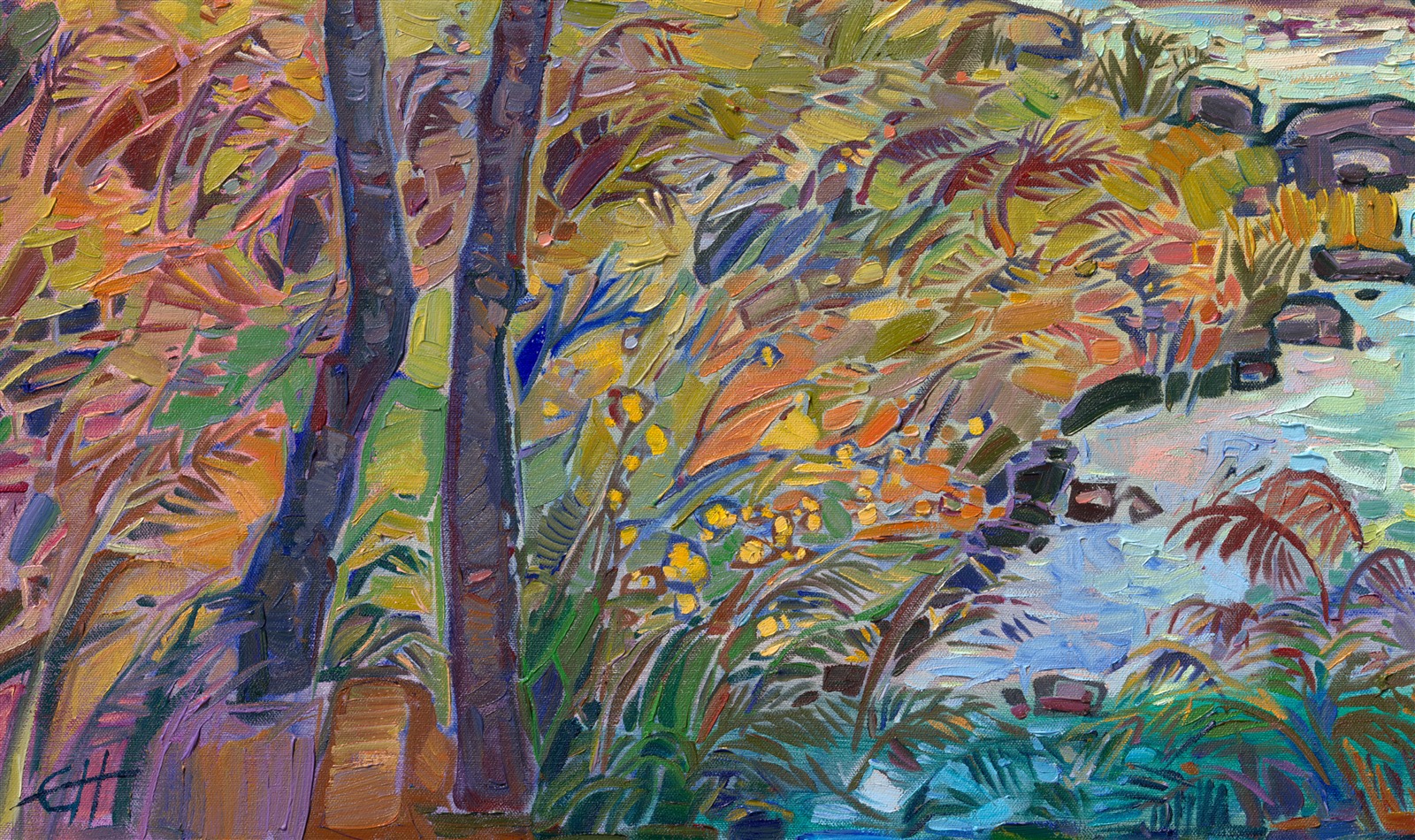 Style: "Open Impressionism" is a new style of painting developed by American artist Erin Hanson. The style is characterized by short, impasto brush strokes that are applied without layering, creating a mosaic or stained-glass appearance to the paintings. The paintings are created with a limited palette of colors, applied without blending or mixing upon the canvas, which adds a dimension of texture to each brush stroke. Inspired by classic impressionism, pointillism, and post-impressionism, Erin Hanson continues the tradition of impressionism into the modern day with her colorful and vivacious landscape paintings.