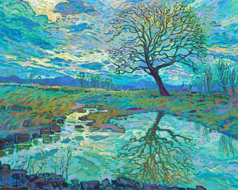 Erin devoted three years to perfecting the technology of 3D art printing in a quest to create a fine art print that captured her vibrant colors and reproduced the texture crucial to her artistic vision. The rhythms of texture in her luscious, impasto oil paintings communicate the movement and joy she finds in nature.