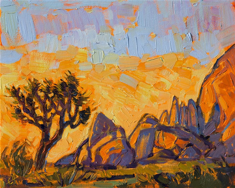 ERIN HANSON has been painting in oils since she was 8 years old. As a teenager, she apprenticed at a mural studio where she worked on 40-foot-long paintings while selling art commissions on the side. After being told it was too hard to make a living as an artist, she got her degree in Bioengineering from UC Berkeley. Afterward, Erin became a rock climber at Red Rock Canyon, Nevada. Inspired by the colorful scenery she was climbing, she decided to return to her love of painting and create one new painting every week.