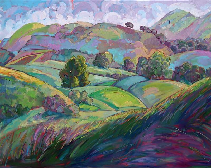 Erin devoted three years to perfecting the technology of 3D art printing in a quest to create a fine art print that captured her vibrant colors and reproduced the texture crucial to her artistic vision. The rhythms of texture in her luscious, impasto oil paintings communicate the movement and joy she finds in nature.