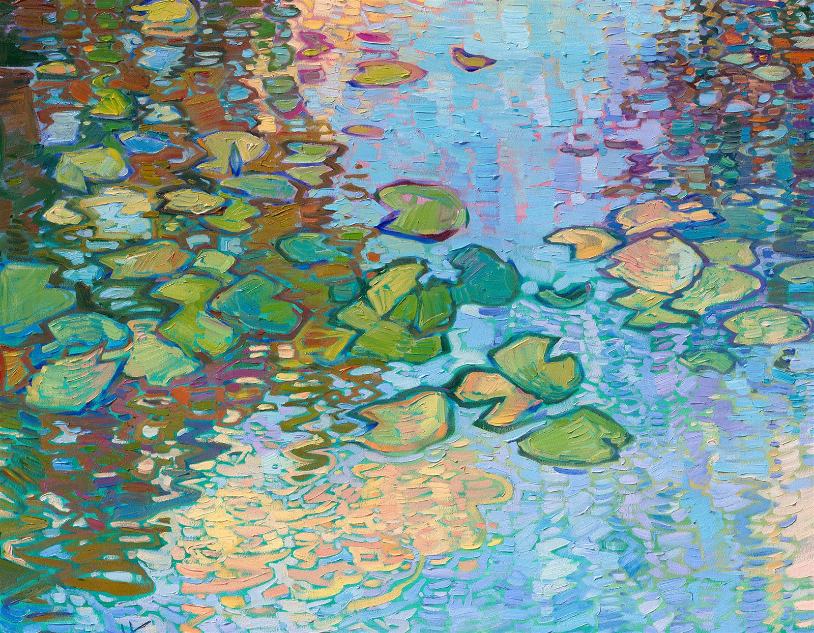 Erin devoted three years to perfecting the technology of 3D art printing in a quest to create a fine art print that captured her vibrant colors and reproduced the texture crucial to her artistic vision. The rhythms of texture in her luscious, impasto oil paintings communicate the movement and joy she finds in nature.