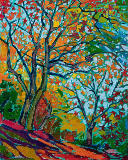 Erin devoted three years to perfecting the technology of 3D art printing in a quest to create a fine art print that captured her vibrant colors and reproduced the texture crucial to her artistic vision. The rhythms of texture in her luscious, impasto oil paintings communicate the movement and joy she finds in nature.
