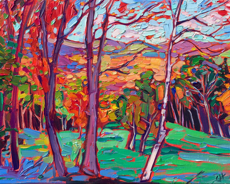 Erin devoted three years to perfecting the technology of 3D art printing in a quest to create a fine art print that captured her vibrant colors and reproduced the texture crucial to her artistic vision. The rhythms of texture in her luscious, impasto oil paintings communicate the movement and joy she finds in nature.