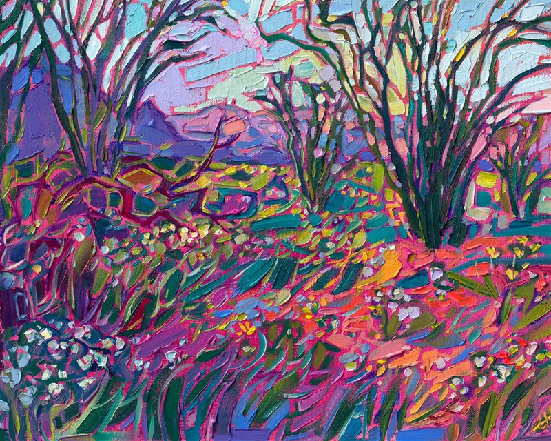 Erin Hanson's 3D Textured Replicas are almost indistinguishable from the original painting from a short distance away, capturing the texture of every brush stroke and weave of the canvas, as well as the vibrant colors of the original oil painting. These are the most realistic painting reproductions available with today's 3D scanning and printing technology.