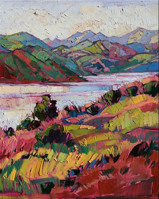 Style: "Open Impressionism" is a new style of painting developed by American artist Erin Hanson. The style is characterized by short, impasto brush strokes that are applied without layering, creating a mosaic or stained-glass appearance to the paintings. The paintings are created with a limited palette of colors, applied without blending or mixing upon the canvas, which adds a dimension of texture to each brush stroke. Inspired by classic impressionism, pointillism, and post-impressionism, Erin Hanson continues the tradition of impressionism into the modern day with her colorful and vivacious landscape paintings.