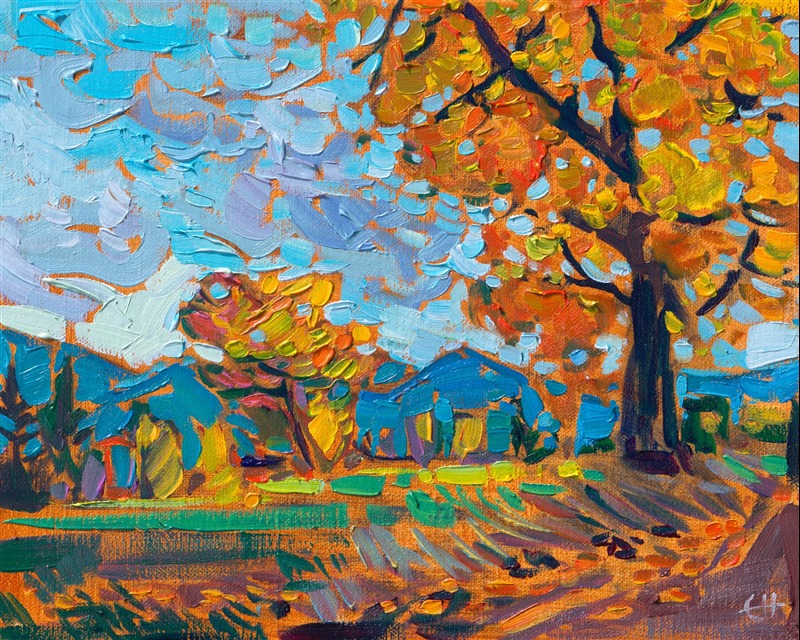This piece will be displayed in Erin Hanson's annual Petite Show in McMinnville, Oregon. This painting is available for purchase now, and the piece will ship after the show on November 11, 2023.
