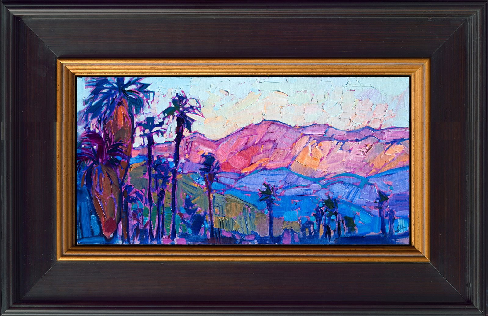 Note on varnishing: Erin’s paintings take six to eight weeks to dry, at which time we apply a retouching varnish, which allows the painting to complete the curing process while having a layer of protection against dirt and scuffs. The full curing process for an impasto oil painting takes at least two years. We are happy to assist in applying a final finishing varnish to your Erin Hanson oil painting once it has been dry for at least two years. Here is more information on how to care for your original oil painting.