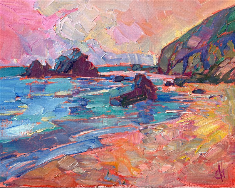 A representative of The Erin Hanson Gallery will arrange delivery of your Erin Hanson original oil painting. We will ensure someone is home to receive the artwork before shipping it out. Erin Hanson usually sells half of her original paintings while they are still drying on the dry rack. If your painting is still drying, we will let you know when it is expected to be fully dry and ready to ship (about six to eight weeks after the painting's completion.)