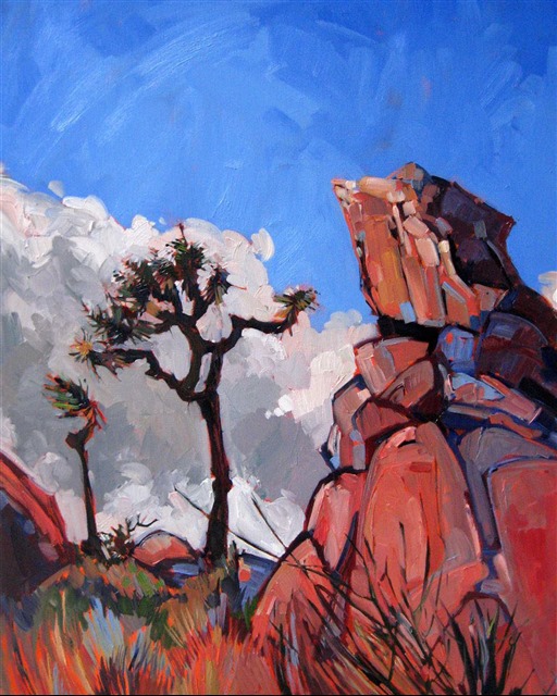 ERIN HANSON has been painting in oils since she was 8 years old. As a teenager, she apprenticed at a mural studio where she worked on 40-foot-long paintings while selling art commissions on the side. After being told it was too hard to make a living as an artist, she got her degree in Bioengineering from UC Berkeley. Afterward, Erin became a rock climber at Red Rock Canyon, Nevada. Inspired by the colorful scenery she was climbing, she decided to return to her love of painting and create one new painting every week.