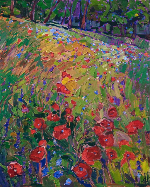 Erin devoted three years to perfecting the technology of 3D art printing in a quest to create a fine art print that captured her vibrant colors and reproduced the texture crucial to her artistic vision. The rhythms of texture in her luscious, impasto oil paintings communicate the movement and joy she finds in nature.