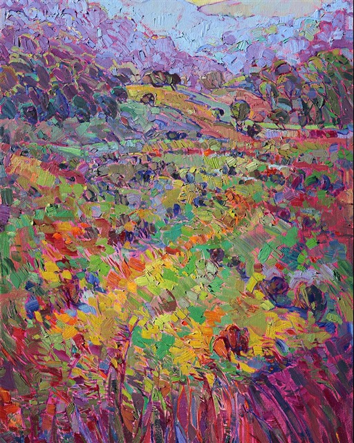 Erin devoted three years to perfecting the technology of 3D art printing in a quest to create a fine art print that captured her vibrant colors and reproduced the texture crucial to her artistic vision. The rhythms of texture in her luscious, impasto oil paintings communicate the movement and joy she finds in nature.