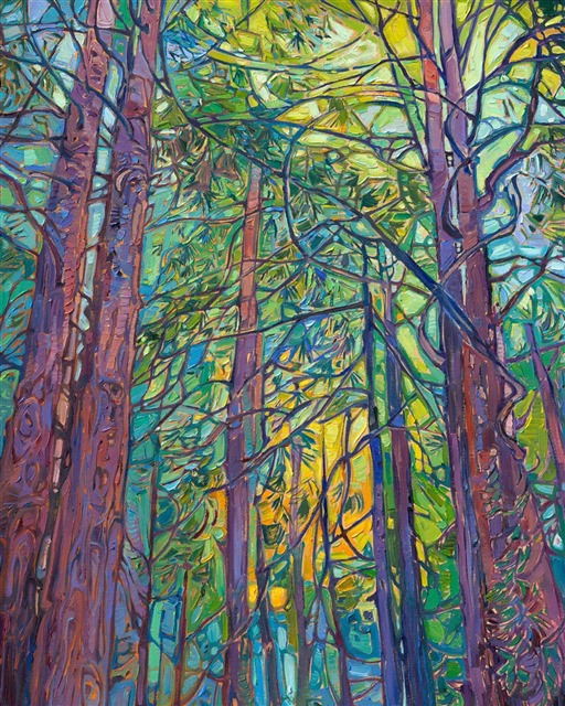 Style: "Open Impressionism" is a new style of painting developed by American artist Erin Hanson. The style is characterized by short, impasto brush strokes that are applied without layering, creating a mosaic or stained-glass appearance to the paintings. The paintings are created with a limited palette of colors, applied without blending or mixing upon the canvas, which adds a dimension of texture to each brush stroke. Inspired by classic impressionism, pointillism, and post-impressionism, Erin Hanson continues the tradition of impressionism into the modern day with her colorful and vivacious landscape paintings.